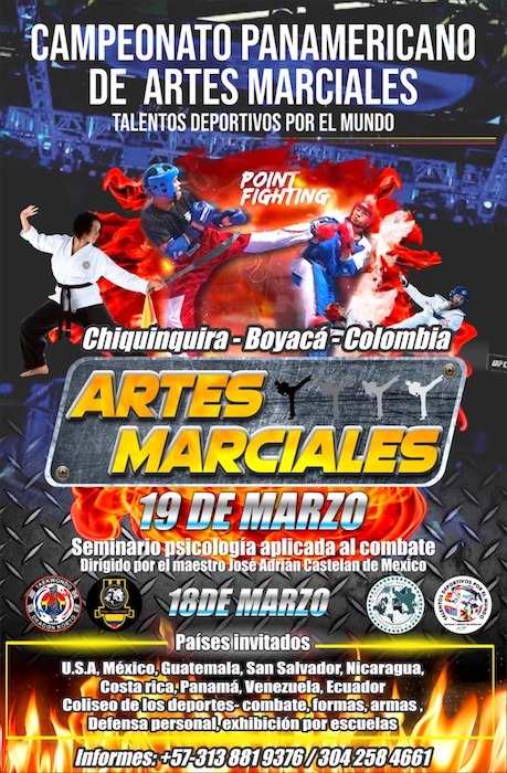 El próximo 19 de marzo del 2023, se llevará a cabo en la ciudad de Chiquinquirá, Colombia el campeonato panamericano de artes marciales.